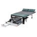 Den brede seng foldes nemt ud og leveres med madras og puder, så du hurtigt kan gå fra køretur til hvile. Sengelængden kan justeres, så opsætningen kan tilpasses både plads og behov.
